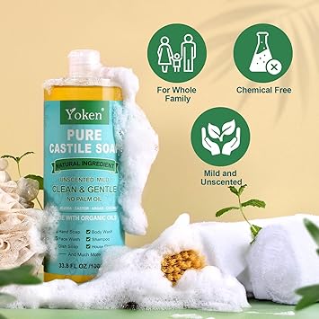 - NOURISH & GENTLE: The liquid castile soap blended with Yoken's star ingredients - castor oil soothes inflammation and nourishes skin & jojoba oil provides deep penetration, gentle for the whole family and effective, delivery cleansed & refreshed.