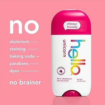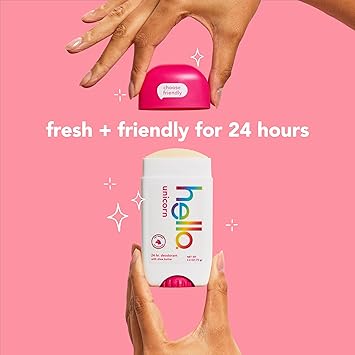 hello Unicorn Aluminum Free Deodorant for Women and Men with Shea Butter, 24-Hour Freshness, Baking Soda Free Deodorant, Dermatologically Tested, 2.6 oz Stick