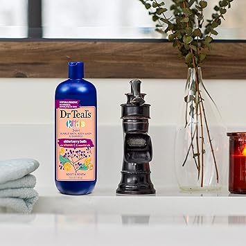 Bath time is fun for kids and easier for parents with Dr Teal's Kids 3-in-1 Elderberry Bath: Bubble Bath, Body Wash & Shampoo. Specially formulated to be safe and hypoallergenic, Dr Teal's Kids 3-in-1 is made with gentle cleansers that make incredible bubbles for a great smelling bubble bath. It also works great as a shampoo and body wash. Elderberry and Vitamin C are combined with natural essential oils to help boost & renew. Dr Teal's Kids 3-in-1 Elderberry Bath: Bubble Bath, Body Wash & Shampoo is paraben-free, phthalate-free, cruelty-free, and vegan.