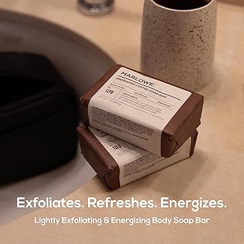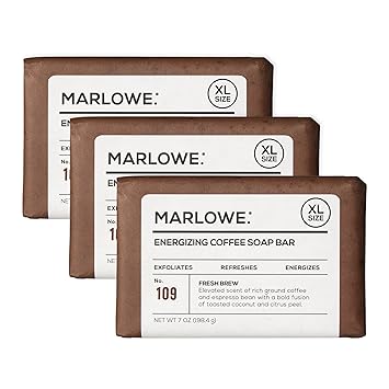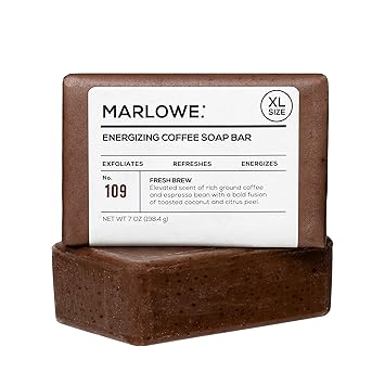 MARLOWE. No. 109 Coffee Bar Soap 7 oz, Body Scrub Soap for Men, Refreshing, Energizing & Exfoliating with Natural Extracts, Caffeine, Coffee Beans & Cocoa Butter, Fresh Brewed Scent