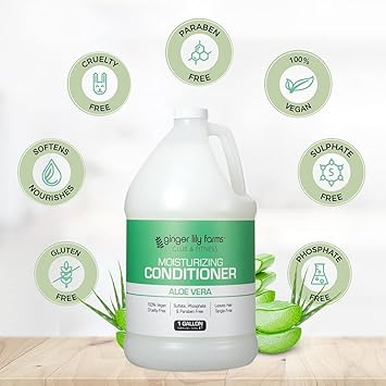 Ginger Lily Farms Club & Fitness Moisturizing Conditioner for Dry Hair, 100% Vegan & Cruelty-Free, Aloe Vera Scent, 1 Gallon (128 fl oz) Refill, white
