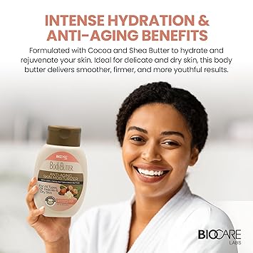 Biocare Body Butter - Infused with Cocoa Butter & Shea Butter plus Alpha-Bioplex for Youthful-Looking, Radiant Complexion, Hydrated, Smoother, Firmer Skin - Without Paraben and Sulfate -16 Oz