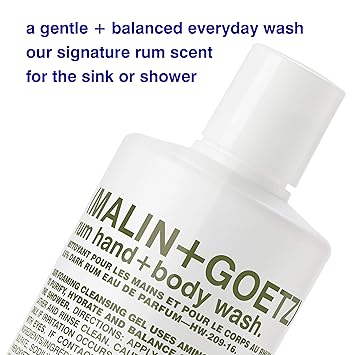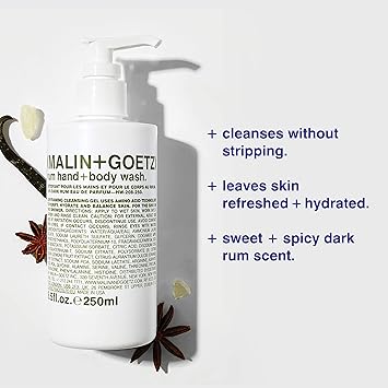 Elevate your everyday with the MALIN GOETZ Rum Hand Body Wash: a dual-use cleanser that brings warmth, luxury, and performance to your routine. Inspired by old world bay rum first used by sailors traveling through the Caribbean, this foaming gel wash is infused with MALIN GOETZ’s signature rum fragrance, known for its comforting blend of sweet, spicy, and warm notes that gently linger on the skin. This best-selling formula uses amino acid-based surfactants to cleanse effectively without stripping or drying. It lathers into a rich foam, washing away impurities while maintaining the skin’s natural moisture barrier. Whether used at the sink or in the shower, it leaves skin feeling refreshed, balanced, and subtly scented with a unique aromatic twist. The warm scent profile of dark rum, layered with hints of plum, bergamot, leather, and amber, makes this cleanser a sensorial experience for both morning routines and evening wind-downs. Its clean formula is suitable for all skin types, including sensitive, and is free from parabens, sulfates, and synthetic fragrance. Designed for modern living, it’s available in 8.5 oz, 16 oz and 128 oz sizes to suit your space or lifestyle—whether it’s a compact bathroom sink or a stocked shower ledge. The sleek, minimalist packaging fits seamlessly into any home, and the elevated scent experience makes it a perfect unisex gift. Vegan, cruelty-free, and made with a commitment to gentle yet effective skincare, this wash is an everyday essential reimagined. Cleanse your skin and awaken your senses with every use—no harsh ingredients, just a warm, aromatic refresh.