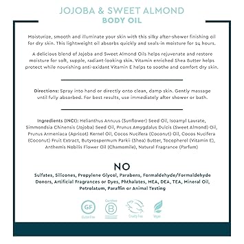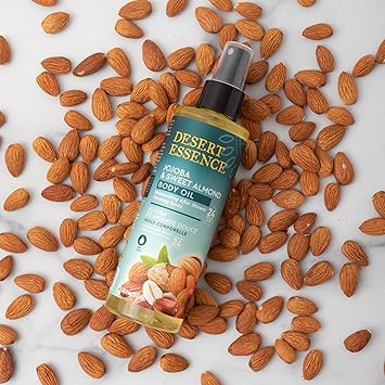 Desert Essence, Jojoba & Sweet Almond Body Oil Spray, 8.28 fl. oz. - Gluten-Free, Vegan, Cruelty Free - 24hour Moisture, Soothes Skin, Perfect for Sensitive Skin, Illuminating Body Spray