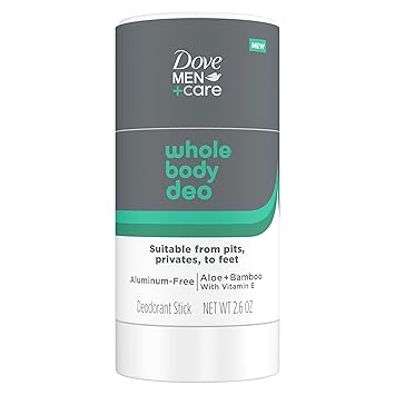 DOVE MEN + CARE Whole Body Deo Aluminum-Free Deodorant Stick Aloe + Bamboo Helps Avoid Chafing Suitable from Pits, Privates, to Feet 2.6 oz