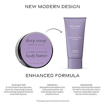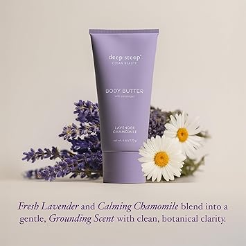 Deep Steep Body Butter, 6 oz - Rich Moisturizer with Ceramides, Coconut Oil, Argan Oil & Aloe Vera - Vegan, Clean Beauty, Smooth & Hydrated Skin (6 Ounces, Lavender Chamomile)