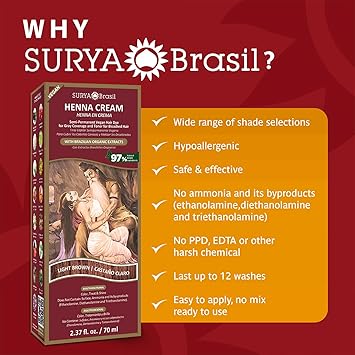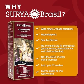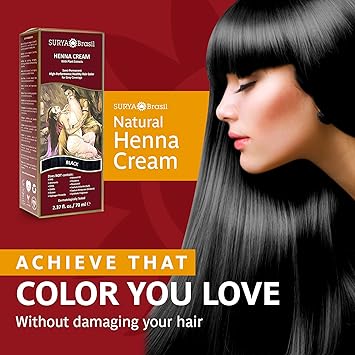 Surya Brasil - Henna Cream for Gray Coverage, Semi Permanent Natural Henna Deep Conditioning Hair Color Treatment, Black, 2.37 oz / 70 ml