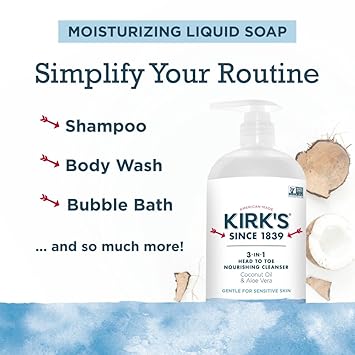 - KIRK’S is the only coconut castile soap brand that has been continually made since 1839. We use carefully sourced ingredients for health-conscious families who want every-day, high-quality cleansing products - a clean you can feel great about; from head to toe and throughout your home!