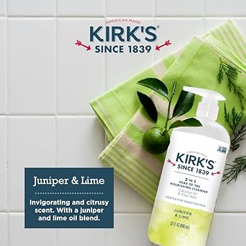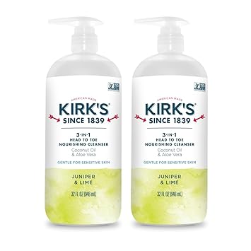 Kirk's 3-in-1 Head to Toe Nourishing Liquid Cleanser- for Men, Women & Children - Premium Coconut Oil & Aloe Vera- Non GMO & Vegan -Juniper & Lime - 32 Fl Oz 2 Pack