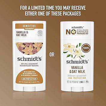 Really Works. Schmidt’s Vanilla & Oat Milk— Formulated with certified 100% natural origin ingredients, this deodorant for women and men is made without aluminum. It’s also certified vegan by Vegan Action and cruelty-free by Leaping Bunny. Our women's and men’s deodorants are naturally enriched with magnesium to help neutralize odor and keep you fresh with 24-hour odor protection that’s gentle on skin. Schmidt’s offers some of the best smelling deodorants for men and women and is made with plant-based oils and butters like coconut oil, jojoba seed oil, and shea moisture butter, as well as vitamin E. Luxurious, long-lasting scents made with 100% natural origin fragrance are never synthetic, always made with plant isolates and essential oils like tea tree oil, jasmine oil, and lavender oil. All our Schmidt’s vegan deodorant sticks require only a small amount for overall effectiveness. To use, hold the deodorant briefly to skin to soften on contact with your body heat. Gently apply 1-2 swipes to dry, clean underarms to keep you feeling fresh all day. This aluminum free deodorant for men and women uses a non-greasy/non-sticky formula that is easily absorbed. Do not apply to irritated, damaged, or freshly shaved skin.