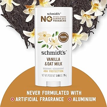 Schmidt's Aluminum-Free Vegan Deodorant Vanilla & Oat Milk with 24 Hour Odor Protection, for Women and Men, Natural Ingredients, Cruelty-Free, 2.65 oz