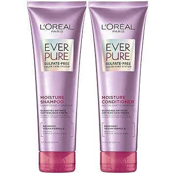 You don't have to choose between protecting the color you love and caring for your hair needs. Elevate your hair care routine to protect hair color and moisturize dry. EverPure Moisture Sulfate Free Shampoo & Conditioner for Color Treated Hair with Rosemary Botanicals deeply replenishes dry hair with 2X more moisture*** with no weighdown, lush-touch softness and luminous shine. Our formulas are especially gentle on color because color-treated hair requires special care. Experience a purely sensorial lush, luxurious lather and a fresh fragrance that blooms. This scent features notes of jasmine and juniper berry. Our 100% sulfate free shampoo and conditioner is free of parabens, harsh salts, harsh surfactants, dyes, and gluten*. Vegan Formula** *Made in a facility that also processes gluten **No animal derived ingredients or by-products ***System of shampoo & conditioner vs. non-conditioning shampoo. Packaging May Vary. What you receive may not be what is reflected on site.