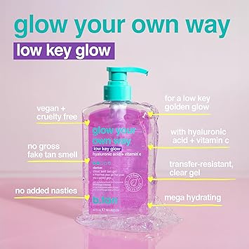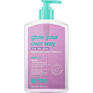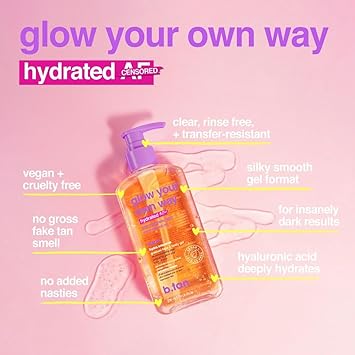 b.tan Face & Body Clear Self Tan Gel | Glow Your Own Way Hydrated - Ultra Hydrating, Transfer-Resistant, Gradual Sunless Tanning Gel for Face and Body, Vegan, Cruelty Free Self Tanner, 8 Fl Oz
