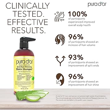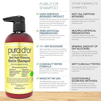 PURA D'OR Original Gold Label Anti-Thinning Shampoo Clinically Tested, Infused with Argan Oil, Biotin & Natural Ingredients, Sulfate Free, All Hair Types, Men and Women, 16 Fl Oz (Packaging may vary)