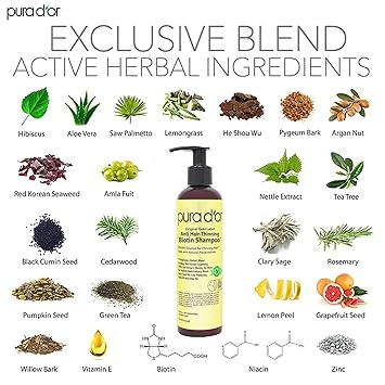 PURA D'OR Original Gold Label Anti-Hair Thinning Shampoo is formulated with 17 Top Rated Key Active Ingredients that promote stronger, cleaner, healthier hair. Hand selected Organic botanical ingredients, such as Argan Oil, Red Korean Seaweed, Saw Palmetto, He Shou Wu and Nettle Extracts, add shine and help strengthen hair follicles by increasing thickness while reducing hair thinning and breakage. Our 3 in 1 Shampoo Wash is gentle, especially for those with a sensitive scalp or even treated hair. All PURA D’OR products are cruelty-free and made without any parabens or sulfates. Contains Natural Preservatives. PURA D'OR is produced and bottled in a renewable energy source facility in Southern California.