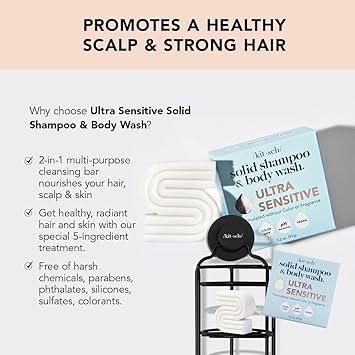 - ULTRA SENSITIVE 2-in-1 SHAMPOO & BODY WASH BAR FOR HAIR, SCALP & SKIN: This gentle multi-purpose cleansing bar is specially formulated to nourish and cleanse sensitive hair, scalp, and skin without irritation. Clinically tested and fragrance-free, it’s perfect for those with ultra-sensitive needs or skin conditions.
