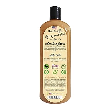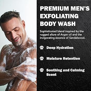 - Invigorating Sandalwood and Argan Oil Blend - This body wash is enriched with the powerful combination of sandalwood and argan oil, which contain nutrients such as Vitamin E that work together to repair, exfoliate, and nourish the skin, leaving it feeling revitalized and refreshed.
