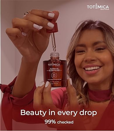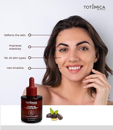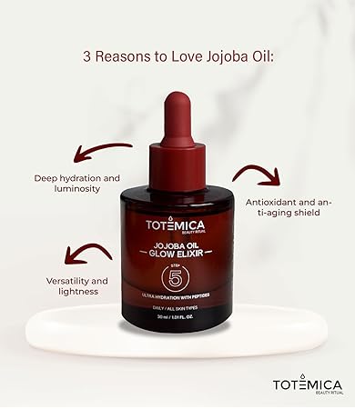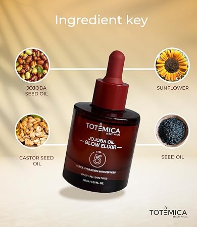 TOTEMICA Organic Jojoba Oil Glow Elixir - Hydrating & Anti-Aging face oil with Peptides | Vegan & Non-Comedogenic facial oil & moisturizing body oil for skin oil & hair oil (1.01 Fl Oz)