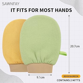 Exfoliating Glove 2 pcs, Exfoliating Mitt for Bath and Shower, 100% Vegan Viscose exfoliating body scrubber, Dead Skin Remover & Body Scrubber Exfoliator, (Beige&Green)