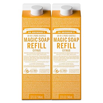 Dr. Bronner's Magic Soap-Pure-Castile Liquid Refill (Citrus, 32 ounce, 2-Pack) - Made with Regenerative Organic Certified Oils, For Body, Hair, Laundry, Pets & Dishes - Concentrated, Vegan, Non-GMO