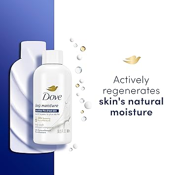 A body wash that gives you lotion-soft feeling skin? Yep, you read that right. Dove Deep Moisture Body Wash is a new type of body care that does what it says. It delivers such deep moisture that your skin will feel lotion-soft long after you leave the shower. Think of it as a shortcut to lotion-soft skin that takes no shortcuts on skin-loving, hydrating ingredients. Let’s get deep to explain. Millions of 24hr Renewing MicroMoisture droplets with skin-natural nourishers and plant-based moisturizers absorb deeply and work with your skin’s natural renewal process to help retain and boost moisture for nourished, soft and healthy-looking skin. You can count on them to deliver a deep level of moisture that starts in the shower and lasts all day. We’re talking peak moisturization. Like iconic level moisture. Up there with Dove's iconic scent of care with gentle, fresh flowers, nourishing soft vanilla, and creamy, milky musks. But don’t take our word for it, try it for yourself. To use this rich, creamy body wash, squeeze into palms or loofah, massage onto skin, rinse, and step out of the shower feeling moisturized all over. And take a minute to touch that incredibly soft skin. Who else would you trust, but the No.1 dermatologist-recommended brand (us) to deliver a long-lasting, nourishing body wash? Plus it’s sulfate-free, paraben-free and packaged in a 100% recyclable bottle. Our Deep Moisture Body Wash is PETA approved, meaning we do not test on animals anywhere in the world.