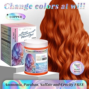 Vegan Semi Permanent Hair Color Mask - 10.15OZ Color Depositing Conditioner for Color-Treated Hair - Ammonia, Paraben, Sulfate & Cruelty-Free - Plant-Based Enhances Tones Hair (COPPER)