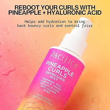 Pacifica Pineapple Curls Refresher Mist - Curl Refresher Spray, with Hyaluronic Acid, Vitamin B5 and Plant Oils, Vegan and Dermatologist Tested Curly Hair Products and Wavy Hair Products - 4 Fl Oz