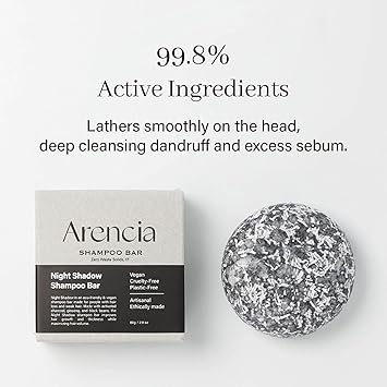 ARENCIA Night Shadow Biotin Shampoo Bar for Regrowth & Hair loss, Darkening, Gray Hair | Strengthening & Volumizing | Normal to Oily Hair | Vegan, Natural, pH balanced, Sulfate free