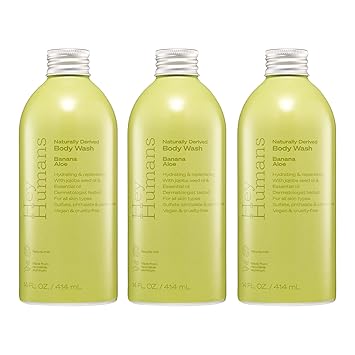 Hey Humans Banana Aloe Moisturizing Body Wash with Natural Ingredients & Jojoba Oil | Clean, Vegan, Sulfate Free Bath & Body Wash for Women & Men | Recyclable Bottle, 14 fl. oz. - Pack of 3