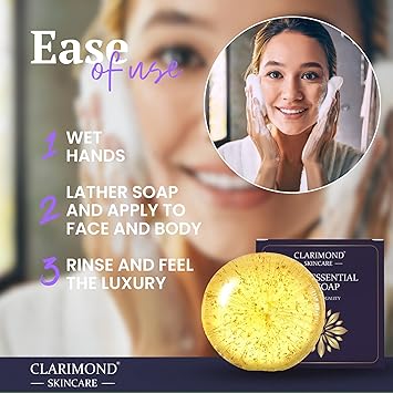 - Nourishing, Handmade Luxury - Elevate your skincare with Clarimond’s handmade soap bar, crafted with essential oils, olive oil, and real gold leaf. This artisanal soap gently cleanses and exfoliates, leaving skin smooth, soft, and radiant.
