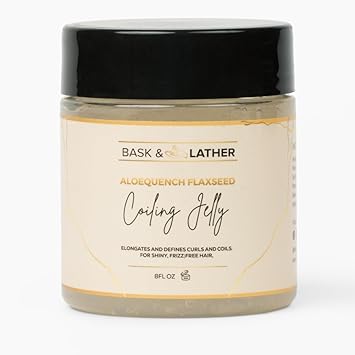 Bask & Lather Aloequench Flaxseed Coiling Jelly, Vegan Curl Defining Jelly with Flaxseed Oil & Aloe Vera, 8oz, Hydrates, Strengthens, Reduces Breakage & Frizz, Cruelty Free, Chemical Free