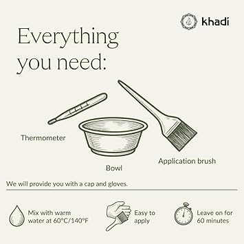 - AYURVEDIC NATURAL COSMETICS: For khadi hair dyes, we only use Henna and Indigo of the highest quality. The plants are ground so finely that they release their color pigments optimally and adhere evenly to the hair.