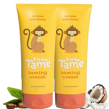 T is for Tame - Hair Taming Cream for Kids, All-Natural for Frizz & Flyaways, Coconut Oil, Leave-in Cream for Babies & Toddlers, Straight or Curly