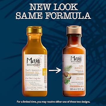 Maui Moisture Curl Quench + Coconut Oil Curl-Defining Anti-Frizz Conditioner to Hydrate and Detangle Tight Curly Hair, Softening Conditioner, Vegan, Silicone & Paraben-Free, 13 fl oz