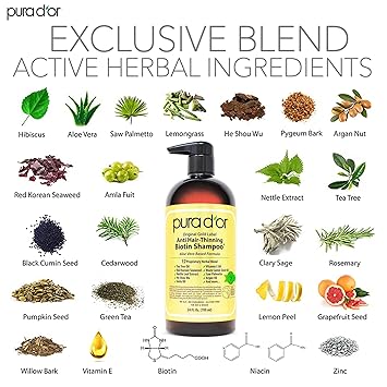 PURA D'OR Original Gold Label Anti-Hair Thinning Shampoo (and Conditioner) is formulated with 17 Top Rated Key Active Ingredients that promote stronger, cleaner, healthier hair. Hand selected botanical ingredients, such as Argan Oil, Red Korean Seaweed, Saw Palmetto, He Shou Wu and Nettle Extracts, add shine and help strengthen hair by increasing thickness while reducing the appearance of hair thinning and breakage. Our shampoo is gentle containing natural preservatives, especially for those with a sensitive scalp or even treated hair. All PURA D’OR products are cruelty-free and made without any parabens or sulfates. PURA D'OR is produced and bottled in a renewable energy source facility in Southern California.
