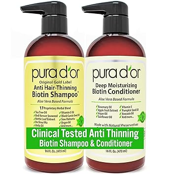 PURA D'OR Anti-Thinning Biotin Shampoo & Deep Moisturizing Conditioner Original Gold Label Set (16oz x2) Natural Earthy Scent, CLINICALLY TESTED Effective Results, Hair Thickening Product, Women & Men