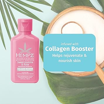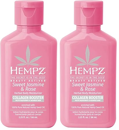 Hempz Mini Collagen-Infused Jasmine & Rose Body Moisturizer, 2.25 oz - Paraben-Free, Vegan, Cruelty-Free
