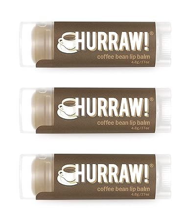 Hurraw! Coffee Bean Lip Balm, 3 Pack: Organic, Certified Vegan, Cruelty and Gluten Free. Non-GMO, 100% Natural Ingredients. Bee, Shea, Soy and Palm Free. Made in USA