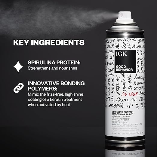 IGK GOOD BEHAVIOR Spirulina Protein Smoothing Spray | Keratin Like Treatment + Frizz Control + Heat Protectant | Vegan + Cruelty Free |