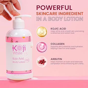 Koji White Kojic Acid & Collagen Body Lotion - Hydrated & Radiant Skin with Arbutin, Deep Moisturizing, Nourishing Care for Smooth & Healthy-Looking Skin - Vegan, 8.45 Fl Oz (1 Bottles)