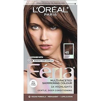 L'Oreal Paris Feria Multi-Faceted Shimmering Permanent Hair Color, 45 French Roast (Deep Bronzed Brown), Pack of 1, Hair Dye