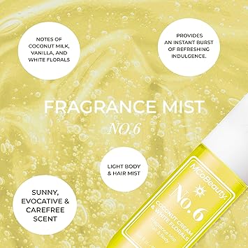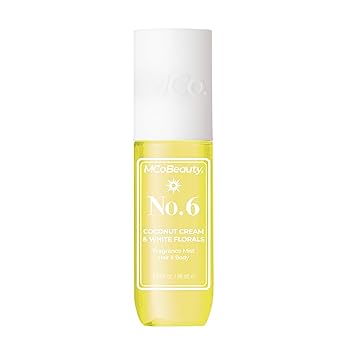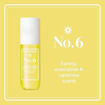 MCoBeauty - Fragrance Mist No. 6 - Light Body Mist and Hair Perfume Coconut Cream & White Florals, Tropical Notes for Day or Night - Vegan, Cruelty Free - Gifts for Women, Feminine Spray - 90ml Bottle