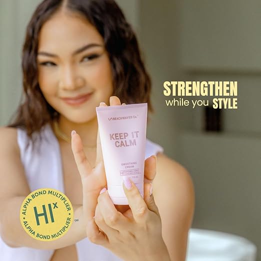 Beachwaver Keep It Calm Smoothing Cream - Full Size (3.8 Oz) | Styling Cream for Smooth, Sleek Hair | Anti-Frizz Flyaway Tamer w/HiX Vegan Bond Multipliers | Polynesian Pink Sugar