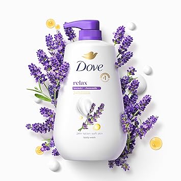 Dove Body Wash with Pump Relax Lavender Oil & Chamomile For 24hr Lotion-Soft Skin Moisturizing Skin Cleanser with No Sulfates No Parabens 30.6 Oz