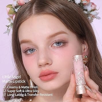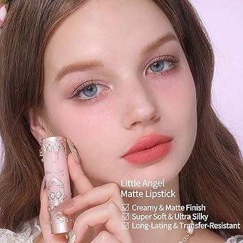 Flower Knows Little Angel Matte Lipstick,Super Soft & Ultra Silky Lip Mud Stick,Long Lasting & Moisturizing Vegan Lip Makeup for Girls&Women,Velvety Pink Finish(C05 Choir)