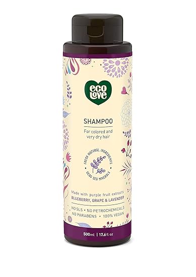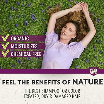 ecoLove - Natural Shampoo, Sodium lauryl sulfate Free, Vegan & Cruelty Free Shampoo for Color Treated Hair, Very Dry & Damaged Hair, Organic Lavender shampoo, No SLS or Parabens, 17.6 oz