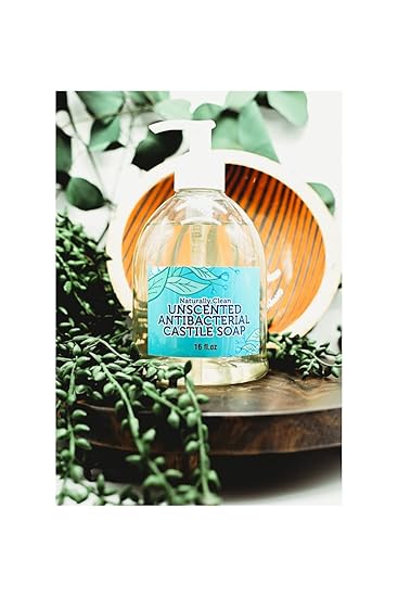Antibacterial Unscented Pure Castile Liquid Soap for Face, Hand & Body Wash-Vegan, Non-GMO, Made in USA, Liquid Castile Soap for All Skin Types, Dry & Sensitive Skin 16 oz