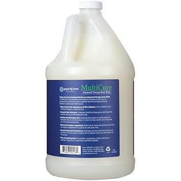 - MultiCure Shower Gel: Helps improve the appearance of skin irritations including acne, athlete's foot, candida, ringworm and jock itch. Powerful odor eliminator helps the body to stay odor-free during the day.