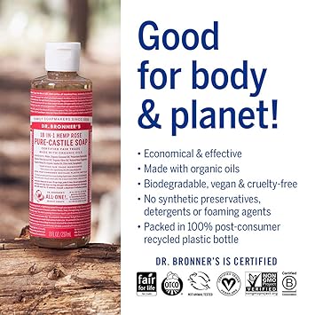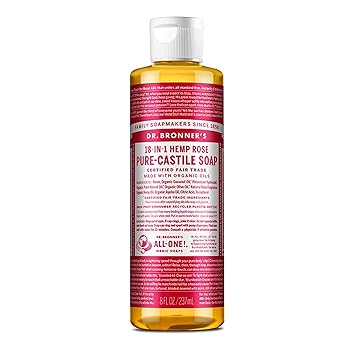 Dr. Bronner's - Pure-Castile Liquid Soap (Rose, 8 ounce) - Made with Organic Oils, 18-in-1 Uses: Face, Body, Hair, Laundry, Pets and Dishes, Concentrated, Vegan, Non-GMO