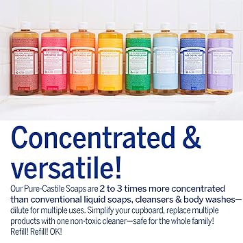 - 3X MORE CONCENTRATED THAN MOST LIQUID SOAPS: Dilute! Dilute! Multiple uses for just one product: laundry, mopping, hand-washing dishes, all-purpose cleaning, washing pets & more. More soap per bottle means less waste in packaging!